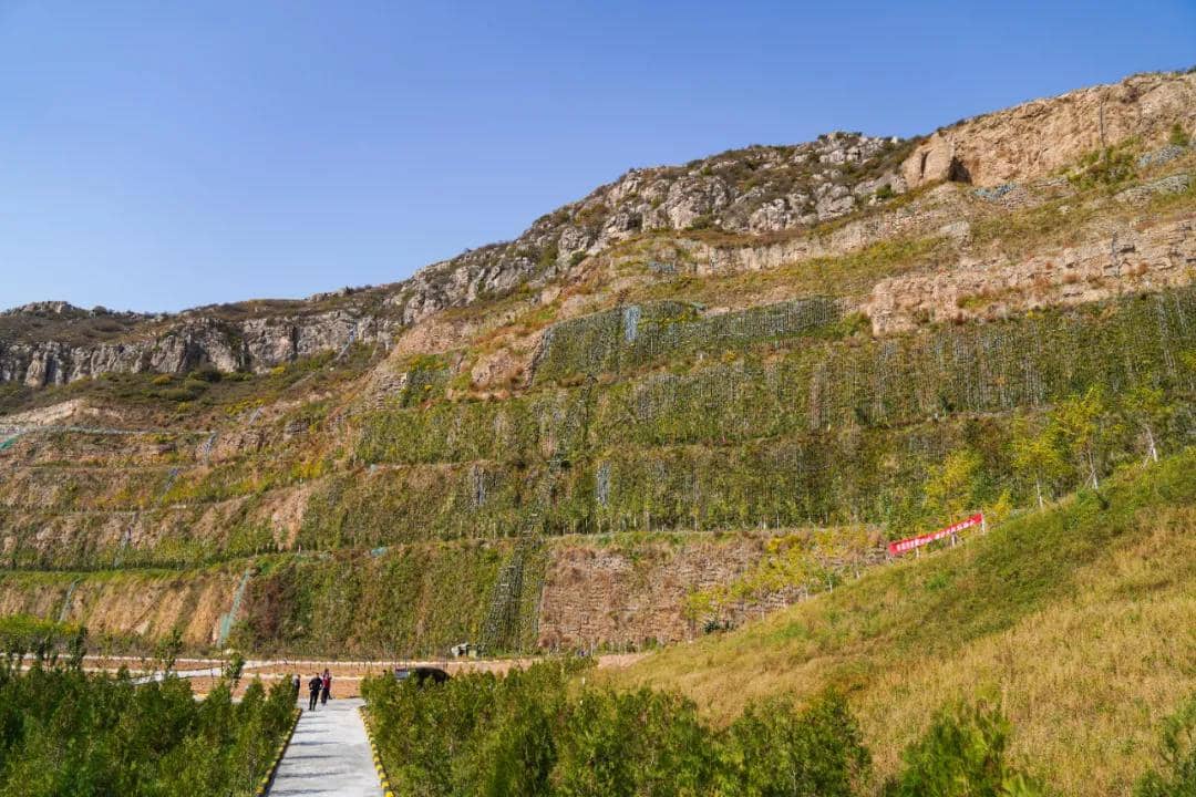 堯柏集團把礦山復綠作為生態(tài)文明建設(shè)的突破口,徹底解決因開采帶來的土地荒蕪、環(huán)境破壞等問題。近三年來,先后投入恢復治理資金超4億元,通過邊開采、邊修復、邊建設(shè)的“三邊”模式,對礦區(qū)實施邊坡治理、覆土見綠、路面硬化、植樹造林、引水上山等一系列舉措,讓礦山舊貌換新顏。目前,累計恢復治理面積近200萬平方米,“堯山公園”初具規(guī)模。走進礦山,放眼望去,錯落有致的邊坡猶如一道道天梯,漫山遍野的花草樹木迎風搖曳,復綠礦區(qū)在藍天白云的映襯下洋溢著全新的生機與活力。