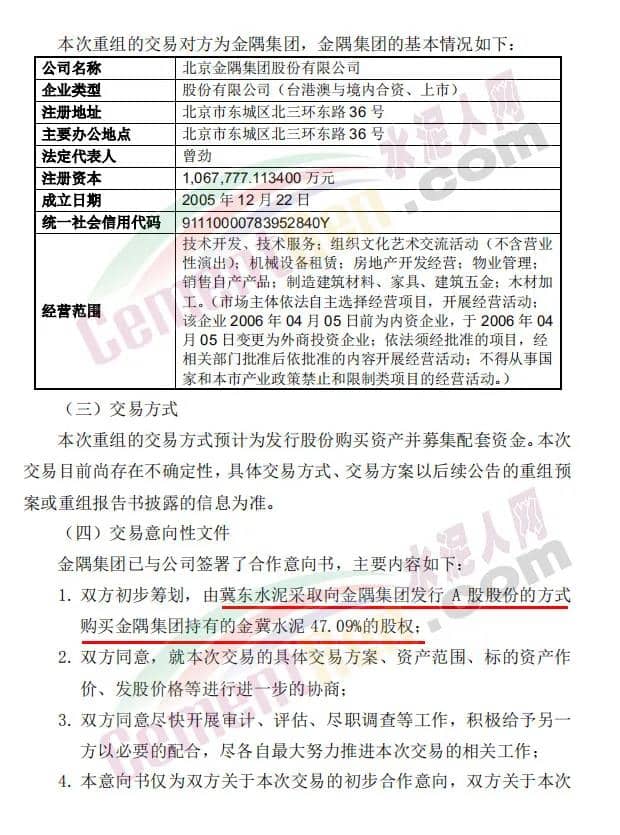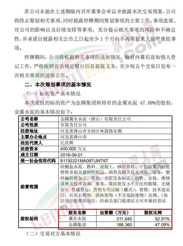 資料顯示,金冀水泥成立于2018年6月1日,注冊資本為400000萬元,經(jīng)營范圍為硅酸鹽水泥、熟料、混凝土、砂石骨料、干粉砂漿的制造銷售及相關(guān)建材的制造、銷售及相關(guān)技術(shù)咨詢、服務(wù);塑料編織袋加工、銷售等。