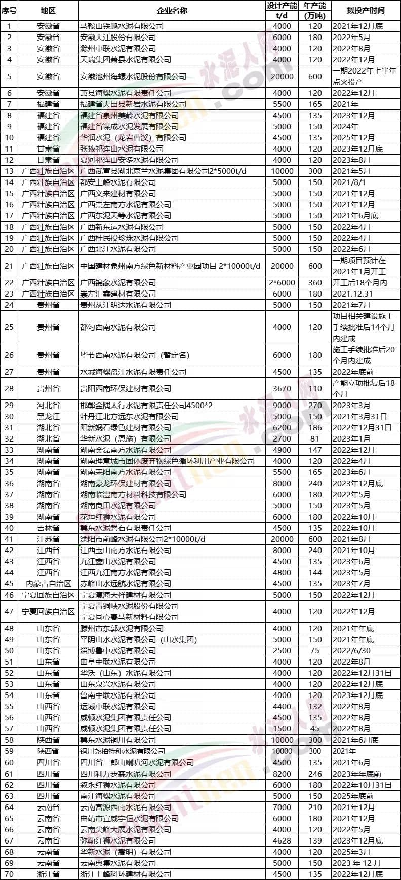 近期,各部門都在著力強調水泥行業(yè)的淘汰落后產能,但是據(jù)水泥人網(wǎng)了解,近兩年,國內水泥行業(yè)淘汰落后產能的數(shù)量并不是很大,甚至大部分龍頭水泥企業(yè)通過產能置換在各地新建熟料生產線,“以舊換新、以小換大”,造成水泥行業(yè)大量水泥熟料生產線項目快速上馬。依據(jù)已公示公告的產能置換項目,將于“十四五”期間投產的生產線達75條以上,合計產能達到1.23億噸/年以上。