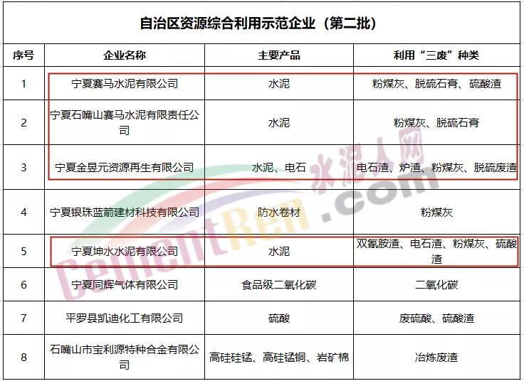 圖片據了解,此次自治區(qū)資源綜合利用示范企業(yè)名單中,寧夏賽馬水泥有限公司、寧夏石嘴山賽馬水泥有限公司,寧夏金昱元資源再生公司、寧夏坤水水泥有限公司這四家水泥企業(yè)榜上有名。