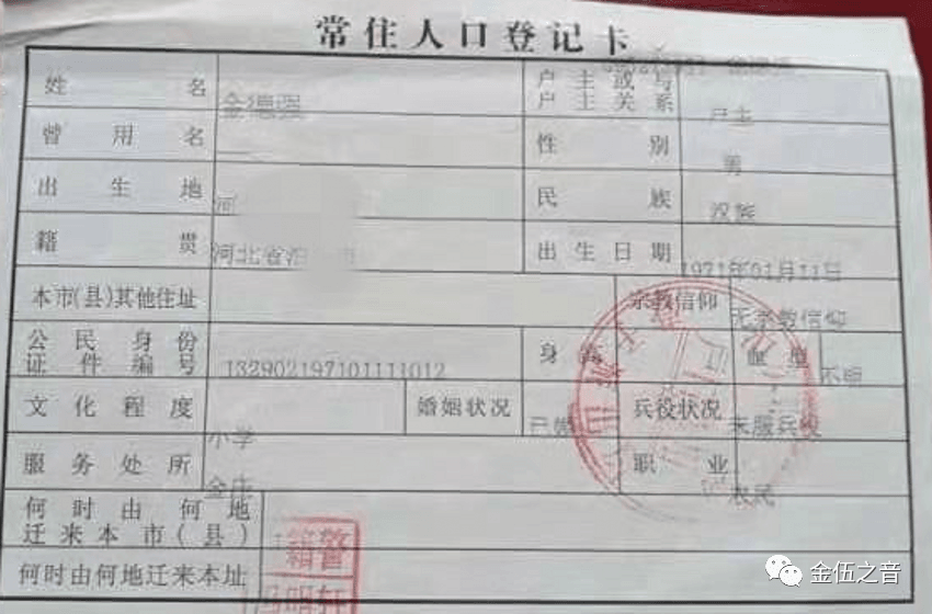 ▼金德強(qiáng)戶口本