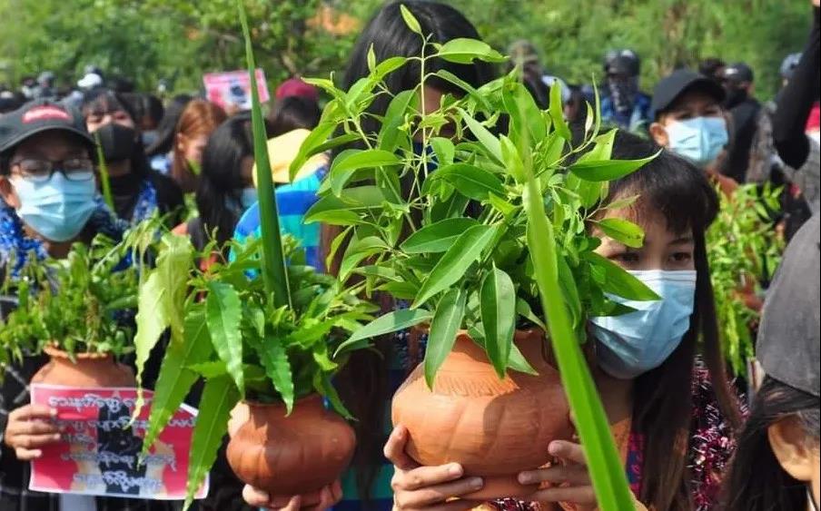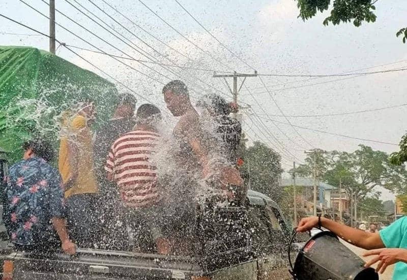 雖然此前緬甸國管委宣布取消今年的潑水節(jié)活動,但在若開邦實(shí)兌、撣邦當(dāng)陽等地,仍然有部分民眾上街潑水。