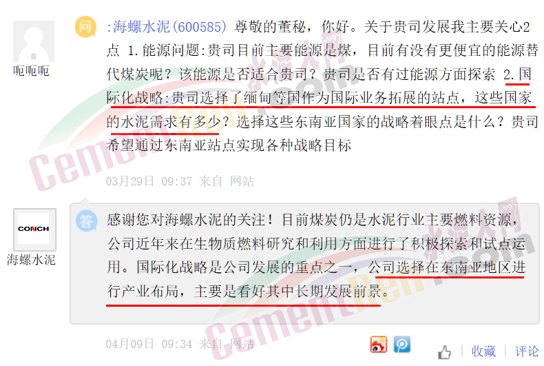 海螺水泥上市公司回復(fù)稱:國際化戰(zhàn)略是公司發(fā)展的重點(diǎn)之一,公司選擇在東南亞地區(qū)進(jìn)行產(chǎn)業(yè)布局,主要是看好其中長期發(fā)展前景。