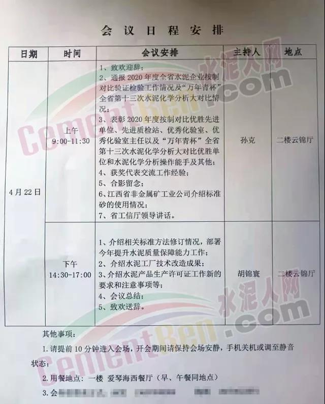 據(jù)水泥人網(wǎng)了解,2020 年度全省水泥企業(yè)對比驗證檢驗置"萬年青杯"全省第十三次水泥化學(xué)分析大對比工作總結(jié)會議指南將于今日在江西省召開。