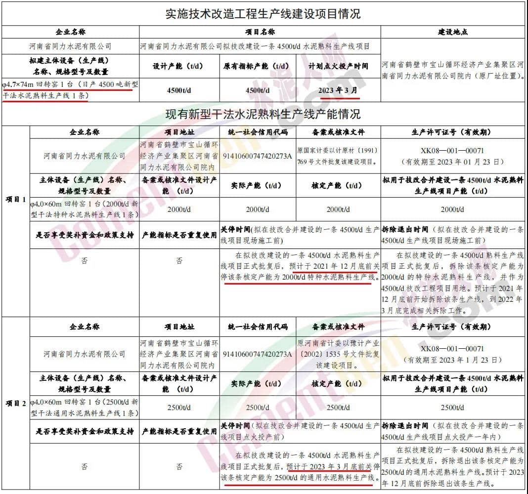 附件:河南省同力水泥有限公司擬技改建設(shè)一條4500t/d水泥熟料生產(chǎn)線項目有關(guān)產(chǎn)能情況