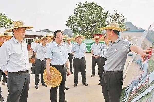 4月22日,自治區(qū)人大常委會副主任、市委書記劉有明(前左二)在崇左南方水泥二期項目現(xiàn)場查看項目規(guī)劃設(shè)計圖,了解項目進展情況。