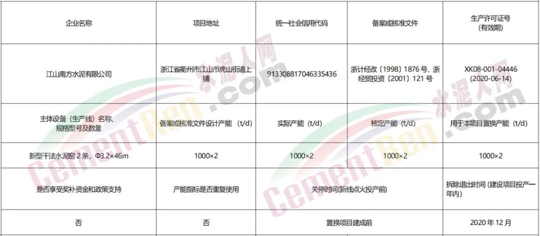 據(jù)水泥人網(wǎng)了解,2020年11月廣西壯族自治區(qū)工業(yè)和信息化廳發(fā)布《關(guān)于崇左南方水泥有限公司5000t/d熟料水泥生產(chǎn)線項目產(chǎn)能置換方案的公告》提到,崇左南方水泥有限公司通過退出江山南方水泥有限公司兩條1000t/d生產(chǎn)線,汪清北方水泥有限公司一條1000t/d和一條800t/d生產(chǎn)線以及新疆屯河水泥有限責任公司一條4000t/d生產(chǎn)線,合計退出6250t/d,用于建設(shè)一條5000t/d生產(chǎn)線,計劃投產(chǎn)時間為2021年12月。