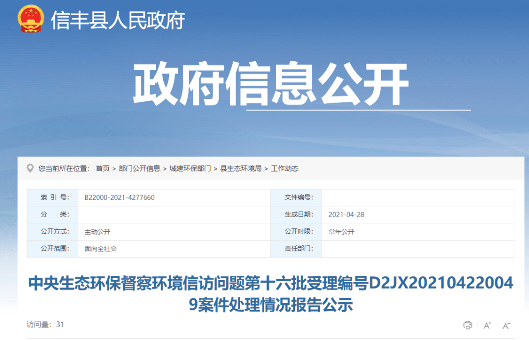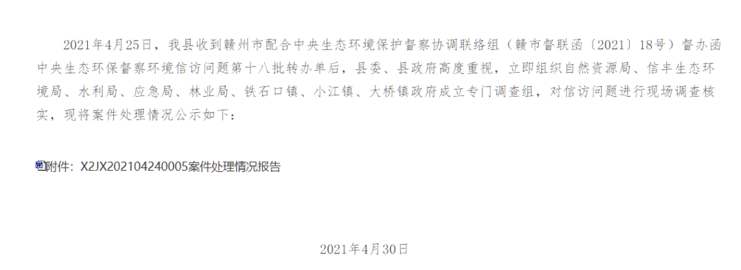 2021年4月30日在信豐縣人民政府網(wǎng)站等媒體公開。