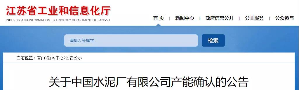 日前,江蘇省工信廳發(fā)布《關(guān)于海螺水泥有限公司產(chǎn)能確認(rèn)的公告》稱,根據(jù)相關(guān)文件要求,現(xiàn)將中國(guó)水泥廠有限公司置換給安徽省和廣西壯族自治區(qū)的水泥熟料產(chǎn)能予以公告,具體公告如下: