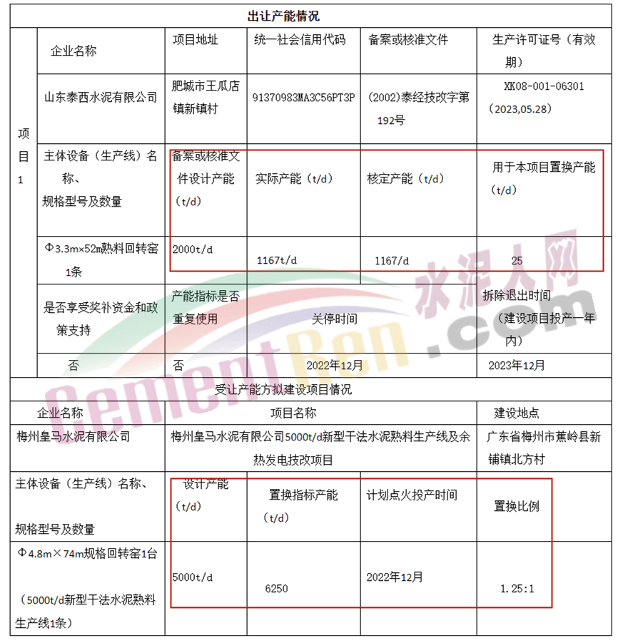 日前,山東省工業(yè)和信息化廳發(fā)布《關(guān)于山東泰西水泥有限公司水泥熟料產(chǎn)能出讓情況公示》稱,根據(jù)相關(guān)規(guī)定,擬將山東泰西水泥有限公司位于泰安市的一條1167t/d水泥熟料生產(chǎn)線的產(chǎn)能轉(zhuǎn)讓給省外企業(yè),具體公示如下: