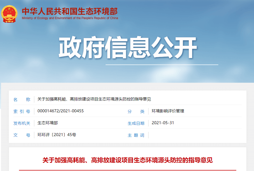 日前,中華人民共和國(guó)生態(tài)環(huán)境部發(fā)布《關(guān)于加強(qiáng)高耗能、高排放建設(shè)項(xiàng)目生態(tài)環(huán)境源頭防控的指導(dǎo)意見(jiàn)》,要求各級(jí)生態(tài)環(huán)境部門(mén)加強(qiáng)生態(tài)環(huán)境分區(qū)管控和規(guī)劃約束、嚴(yán)格“兩高”項(xiàng)目環(huán)評(píng)審批、推進(jìn)“兩高”行業(yè)減污降碳協(xié)同控制、依排污許可證強(qiáng)化監(jiān)管執(zhí)法、依排污許可證強(qiáng)化監(jiān)管執(zhí)法。具體意見(jiàn)如下: