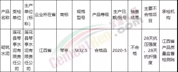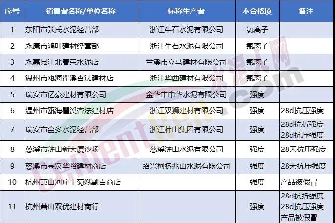 此前,浙江省市場監(jiān)督管理局發(fā)布《關(guān)于2020年流通領(lǐng)域?qū)嶓w店產(chǎn)品質(zhì)量監(jiān)督抽查情況的通報》中顯示不合格的13個批次水泥產(chǎn)品中包括11個批次砌筑水泥M32.5產(chǎn)品,不合格項目涉及強度和氯離子含量。