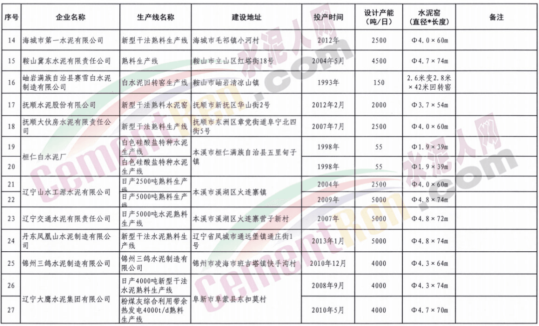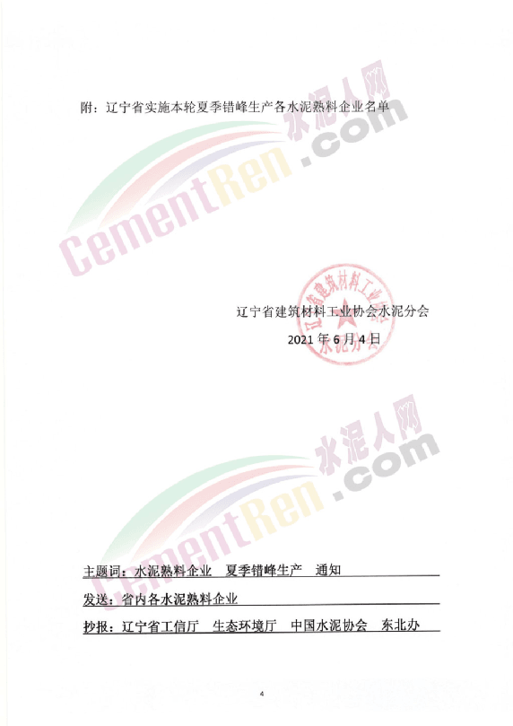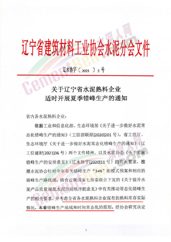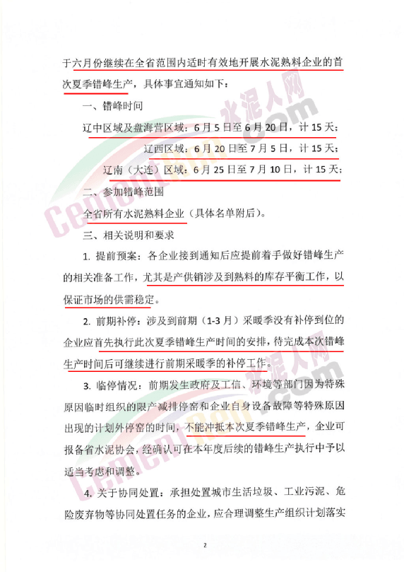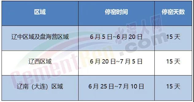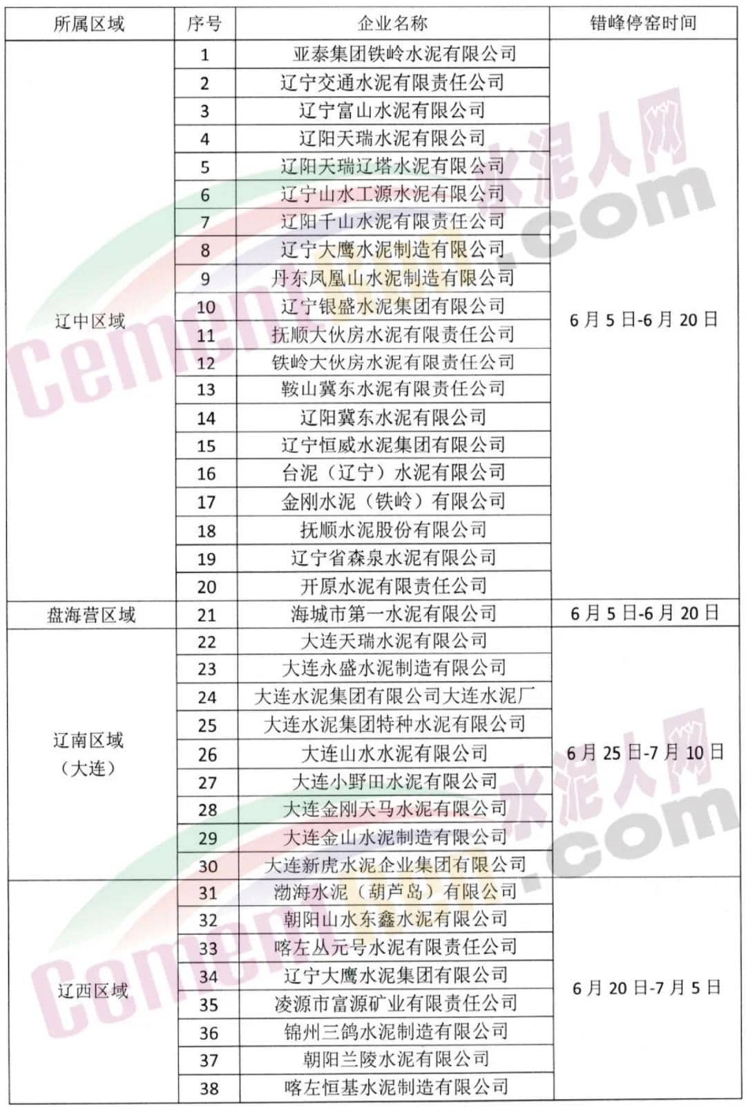 遼寧省熟料生產(chǎn)線首次夏季錯(cuò)峰時(shí)間表