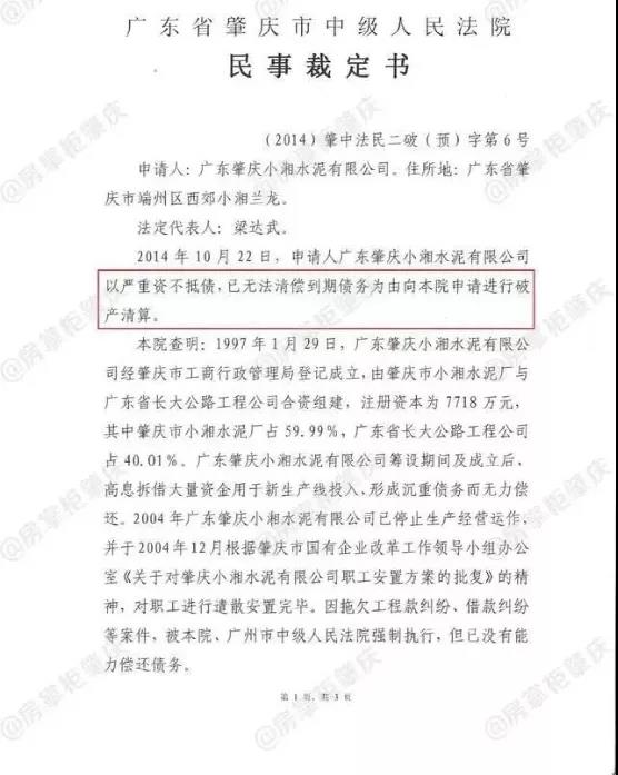 今年5月初阿里司法拍賣平臺掛出了肇慶小湘水泥有限公司的拍賣公告。起拍價2825.9904萬元。