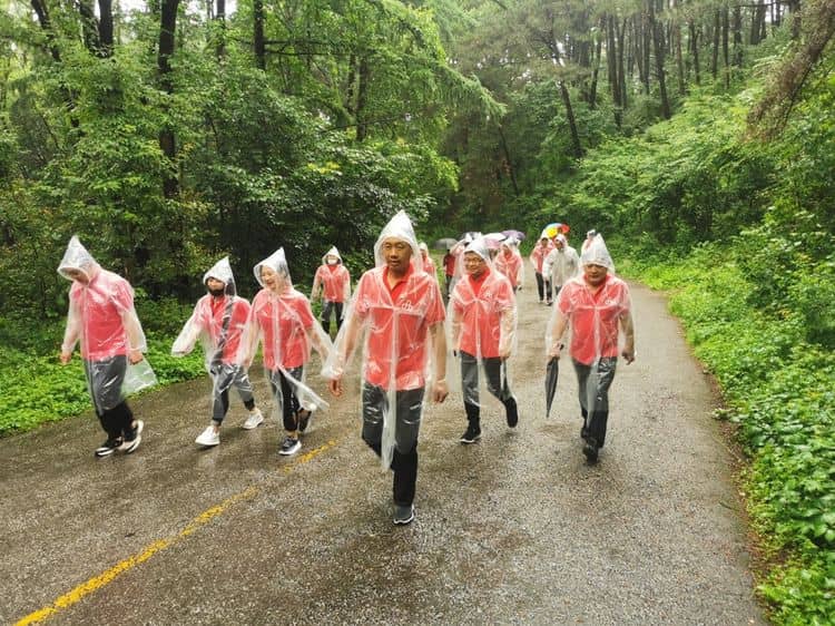 員工們排成長長的隊(duì)伍,穿梭在山嶺之間,面臨種種艱險(xiǎn),大家充分發(fā)揮了不畏艱險(xiǎn),勇于攀登的精神,用積極向上的心態(tài),體會“一步一景”的樂趣。
