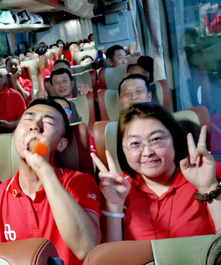 回去的路上,員工們意猶未盡,一路的愛國歌曲唱回公司,一路的歡歌笑語,一路的激情飛揚(yáng)!