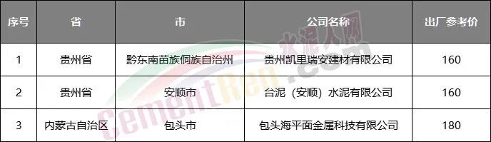 據(jù)水泥人網(wǎng)信息中心重點(diǎn)監(jiān)控的500多家企業(yè)PO42.5散裝水泥報(bào)價(jià)信息來(lái)看,除上述臺(tái)泥水泥報(bào)價(jià)160元/噸,區(qū)域內(nèi)其他企業(yè)暫未調(diào)價(jià)。而一直以最低價(jià)銷售的內(nèi)蒙古包頭海平面水泥,目前報(bào)價(jià)依然在180元/噸,區(qū)域內(nèi)冀東水泥報(bào)價(jià)240元/噸。同時(shí)200元/噸以下的報(bào)價(jià)也僅為個(gè)別企業(yè),不代表整個(gè)區(qū)域價(jià)格。