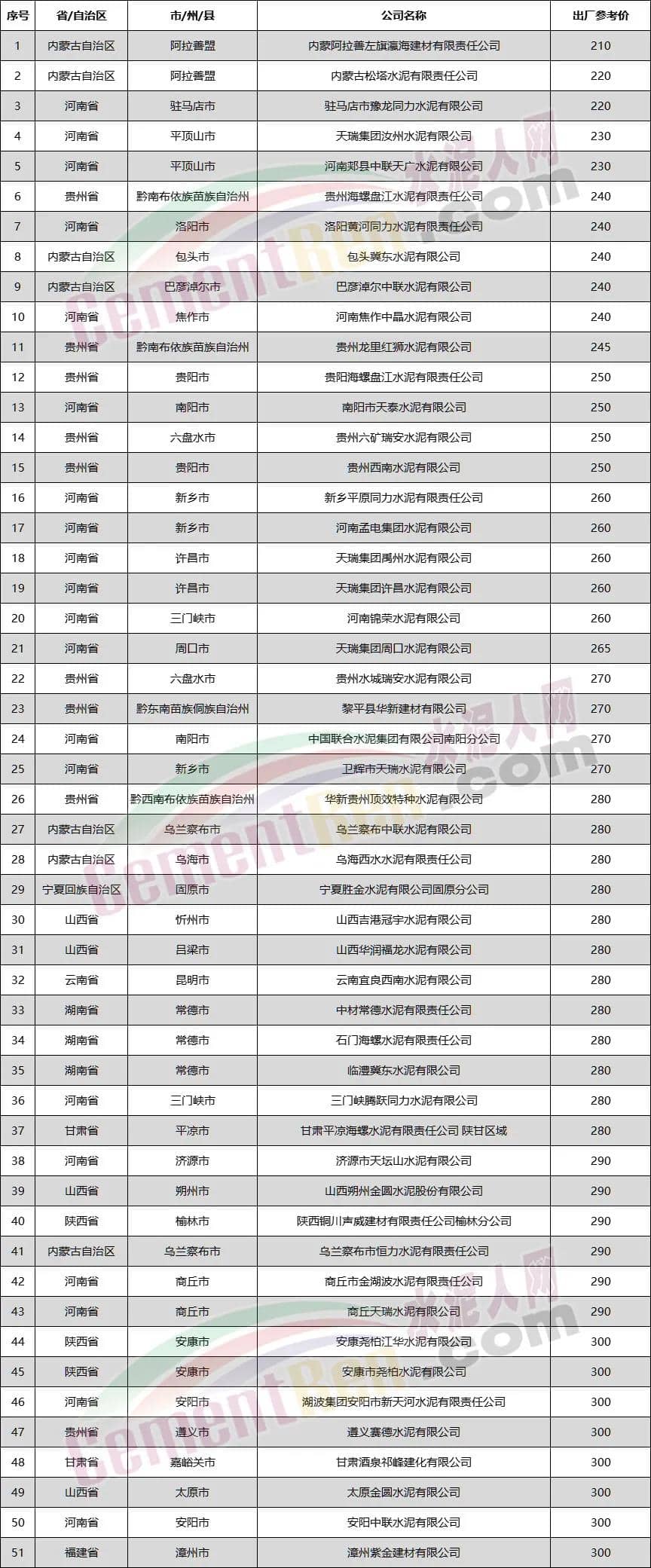 備注:以上數(shù)據(jù)來(lái)源于水泥人網(wǎng)信息中心,如有差池,請(qǐng)以實(shí)際數(shù)據(jù)為準(zhǔn)!