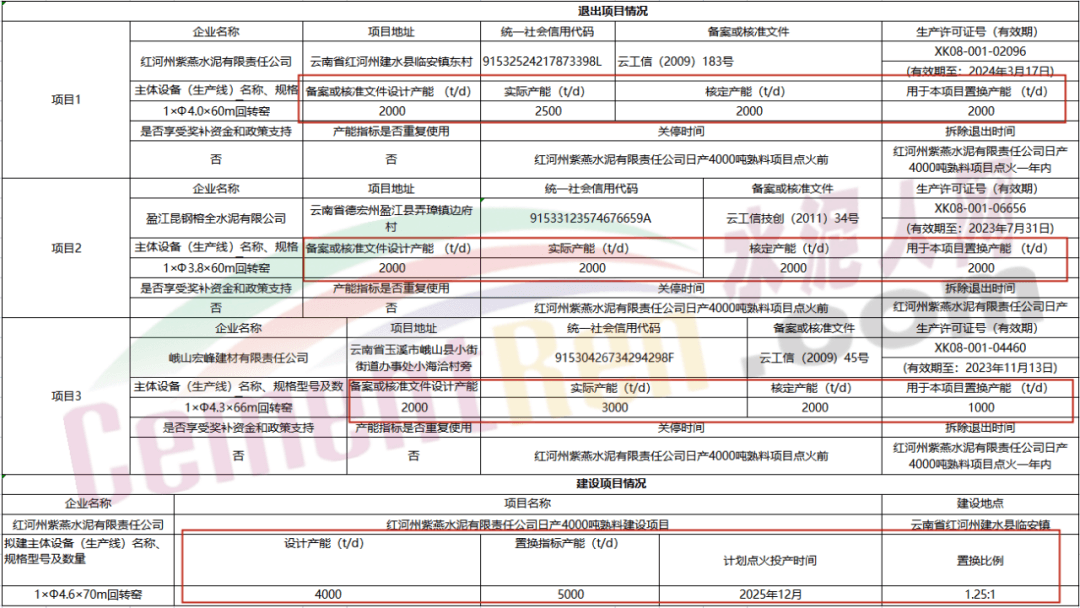 24日,云南省工信廳發(fā)布《紅河州紫燕水泥有限責(zé)任公司日產(chǎn)4000噸水泥熟料建設(shè)項目產(chǎn)能置換方案公示》稱,按照相關(guān)文件要求,現(xiàn)將紅河州紫燕水泥有限責(zé)任公司2000t/d、盈江昆鋼榕全水泥有限公司2000t/d、峨山宏峰建材有限責(zé)任公司1000t/d水泥熟料生產(chǎn)線以1.25:1的比例減量置換至紅河州紫燕水泥有限責(zé)任公司用于新建一條4000t/d熟料項目。公示期為2021年6月24日至7月7日。具體公示如下: