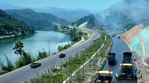 通達(dá)石臺(tái)縣的池祁高速池州至石臺(tái)段已經(jīng)開鋪瀝青面層。金海礁攝
