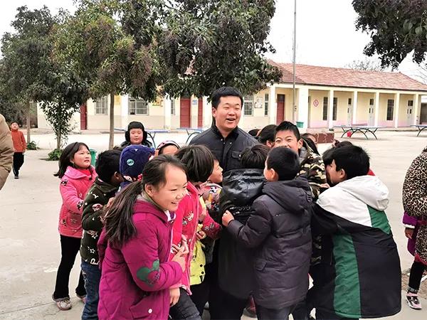 華安證券公司支教員工受到盧天廟小學(xué)學(xué)生的熱烈歡迎。華安證券供圖