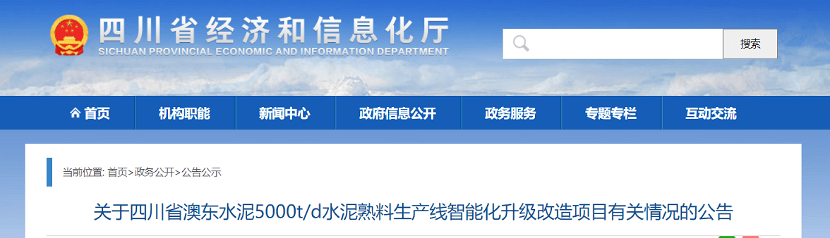 2021.6.29日,四川省工信廳公布了澳東水泥5000t/d水泥熟料生產(chǎn)線智能化升級(jí)改造項(xiàng)目有關(guān)情況,如下: