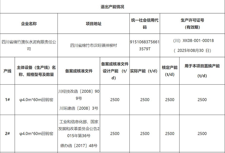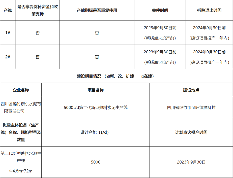 四川省澳東水泥5000t/d水泥熟料生產(chǎn)線智能化升級(jí)改造項(xiàng)目本情況表