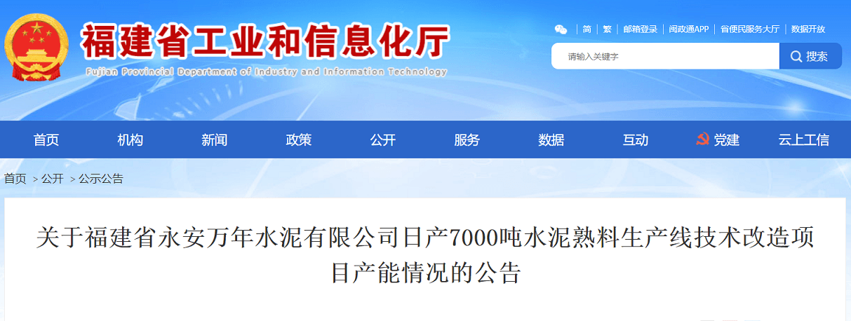 福建省永安萬年水泥有限公司擬拆除整合公司現(xiàn)有的1條日產(chǎn)2500噸和1條日產(chǎn)4500噸水泥熟料生產(chǎn)線,在原廠區(qū)技術(shù)改造建設(shè)1條日產(chǎn)7000噸水泥熟料生產(chǎn)線。根據(jù)《國(guó)務(wù)院關(guān)于化解產(chǎn)能嚴(yán)重過剩矛盾的指導(dǎo)意見》(國(guó)發(fā)〔2013〕41號(hào))和《工業(yè)和信息化部關(guān)于印發(fā)鋼鐵水泥玻璃行業(yè)產(chǎn)能置換實(shí)施辦法的通知》(工信部原〔2017〕337號(hào))等有關(guān)要求,現(xiàn)將福建省永安萬年水泥有限公司日產(chǎn)7000噸水泥熟料生產(chǎn)線技術(shù)改造項(xiàng)目產(chǎn)能情況予以公告,歡迎社會(huì)公眾進(jìn)行監(jiān)督。聯(lián)系電話:0591-83613733。