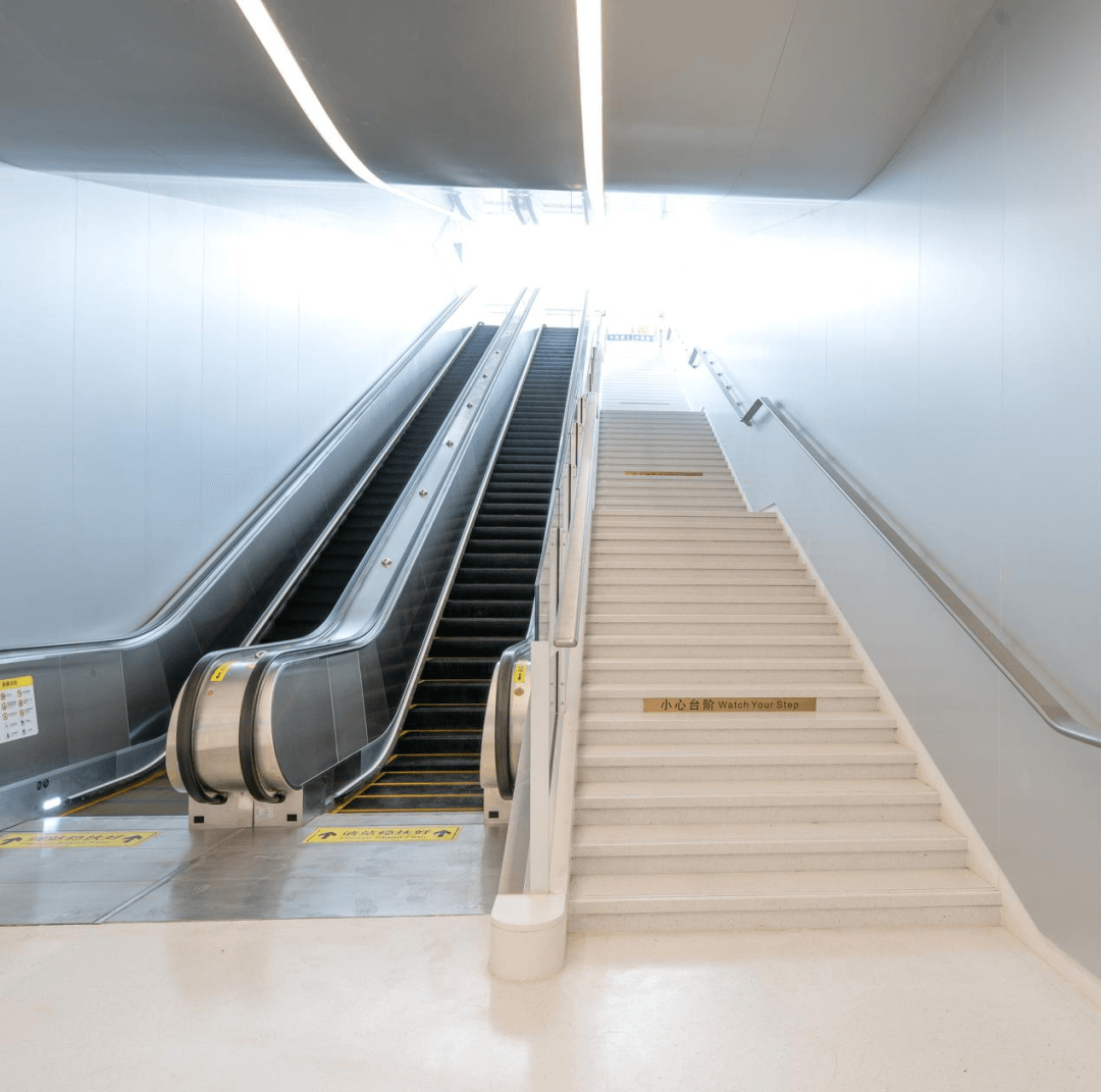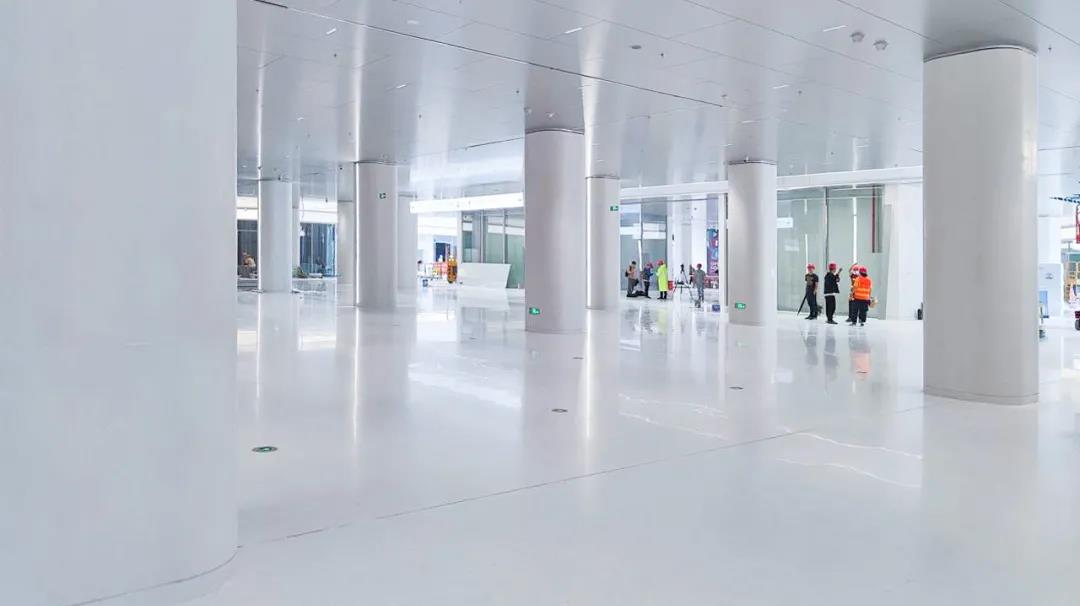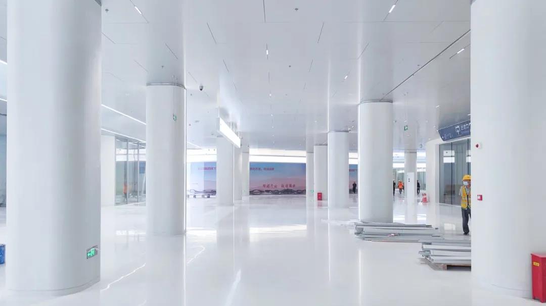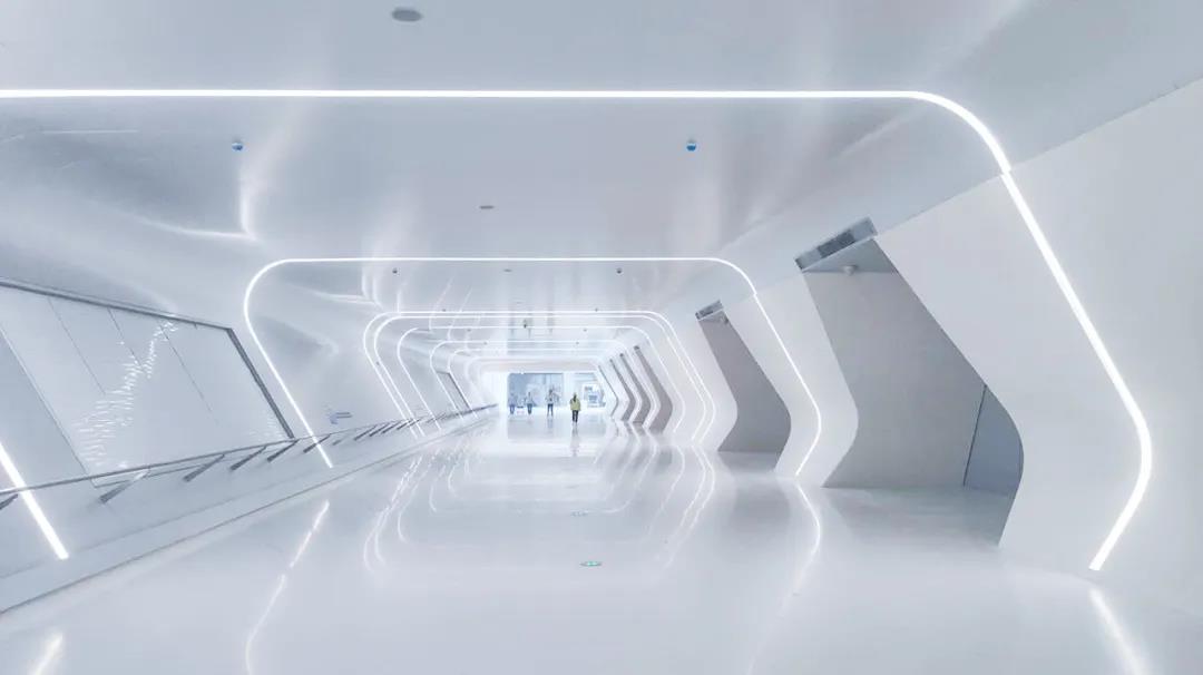 進(jìn)站通道風(fēng)格簡潔,地面采用到華潤水泥人造石,整體設(shè)計(jì)極具未來感。