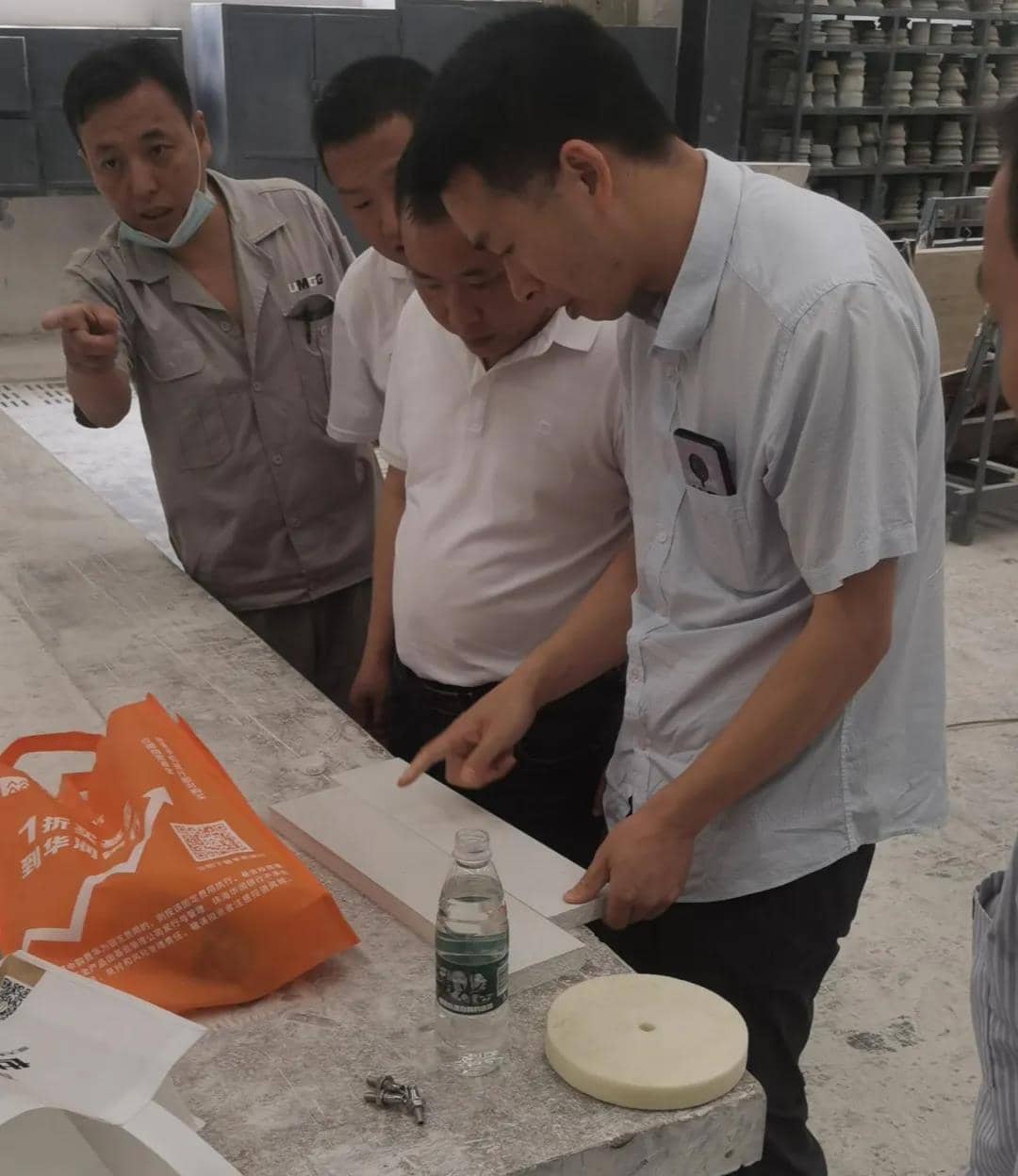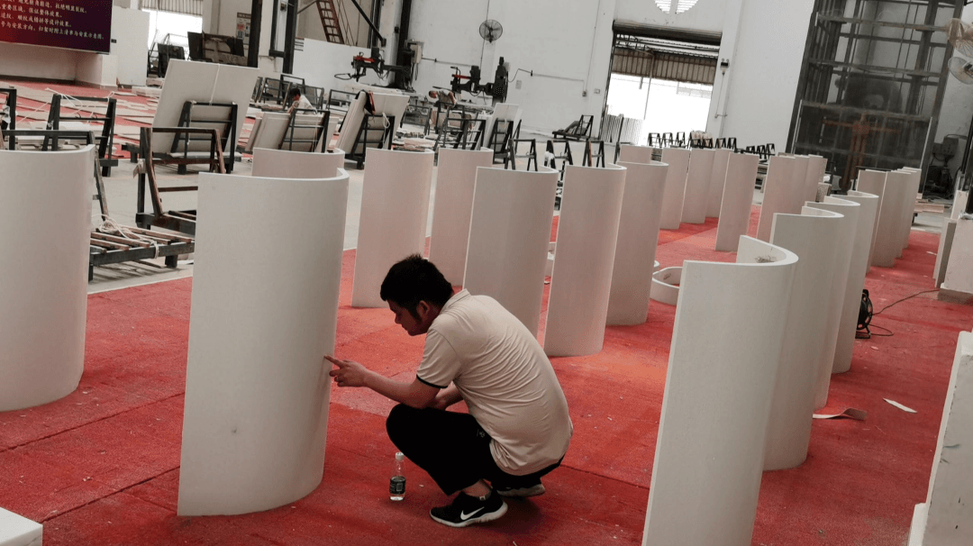 QC主管對弧板成品進(jìn)行抽樣復(fù)檢