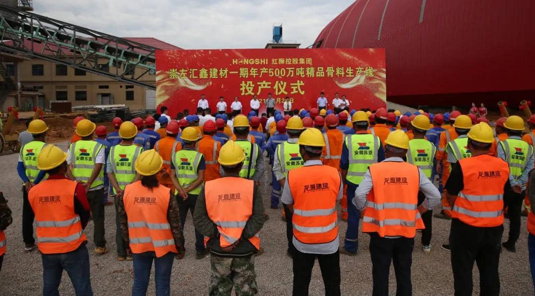 6月28日,紅獅控股集團(tuán)下屬崇左匯鑫建材一期年產(chǎn)500萬噸精品骨料生產(chǎn)線投產(chǎn),投產(chǎn)儀式副市長勞寧軍參加投產(chǎn)儀式并宣布骨料生產(chǎn)線投產(chǎn)。江州區(qū)區(qū)長李紅蘭參加投產(chǎn)儀式并致辭。