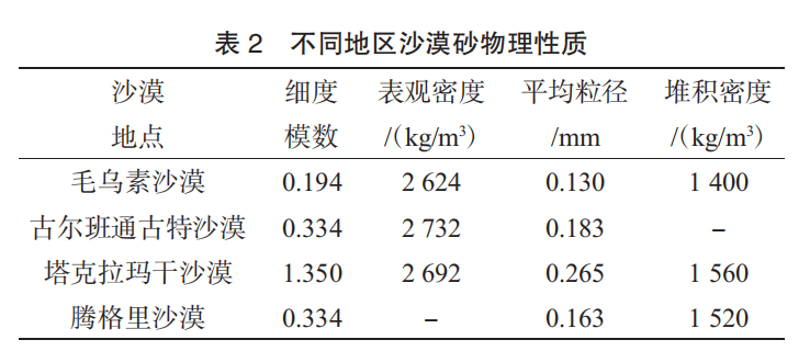 我國(guó)不同沙漠地區(qū)沙漠砂物理性質(zhì)
