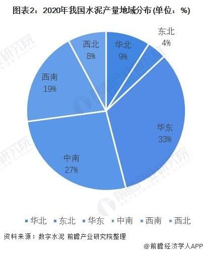 我國水泥生產(chǎn)主要集中在華東地區(qū)占比超三成