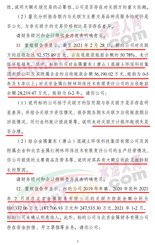 其中,標(biāo)的公司對(duì)金隅冀東(唐山)混凝土環(huán)保科技集團(tuán)有限公司及其附屬企業(yè)的應(yīng)收賬款余額56,190.02萬元,賬齡為0-5年及5年以上;對(duì)北京金隅紅樹林環(huán)保技術(shù)有限責(zé)任公司的應(yīng)收賬款余額28,219.47萬元,賬齡為0-2年。請(qǐng)公司: