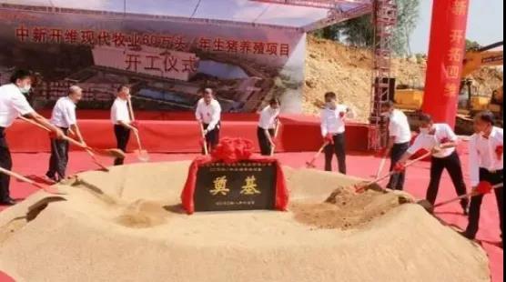 2020年8月17日上午,湖北中新開維現(xiàn)代牧業(yè)有限公司年產(chǎn)60萬(wàn)頭生豬養(yǎng)殖項(xiàng)目開工典禮在湖北世紀(jì)新峰雷山水泥廠區(qū)內(nèi)隆重舉行。項(xiàng)目計(jì)劃投資20億元,建設(shè)單體26層高的生產(chǎn)大樓及附屬建筑,總建筑面積45萬(wàn)平方米,建成后年出欄生豬量可達(dá)60萬(wàn)頭。