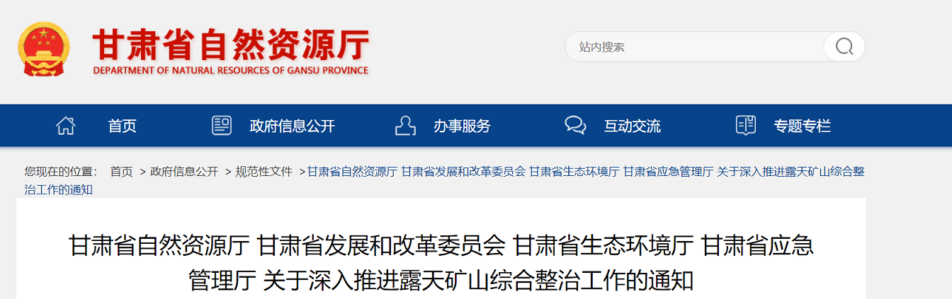 本通知自發(fā)布之日起施行,有效期5年,甘肅省自然資源廳《關(guān)于打贏藍天保衛(wèi)戰(zhàn)全面推進露天礦山綜合整治的通知》(甘資礦發(fā)〔2019〕32號)同時廢止。