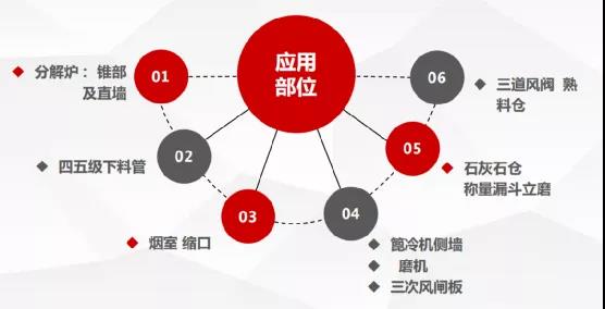 為解決水泥行業(yè)長(zhǎng)期以來(lái)的困擾,水泥人網(wǎng)經(jīng)過(guò)長(zhǎng)期的市場(chǎng)調(diào)研,發(fā)現(xiàn)微晶產(chǎn)品的應(yīng)用在緩解水泥預(yù)分解系統(tǒng)結(jié)皮的問(wèn)題上作用明顯。山東淄博乾沃工貿(mào)有限公司(以下簡(jiǎn)稱“乾沃工貿(mào)”)是一家國(guó)內(nèi)最早研制微晶耐磨防結(jié)皮材料的企業(yè),專注于微晶新材研發(fā)多年,其生產(chǎn)的水泥窯專用微晶耐磨防結(jié)皮新材可應(yīng)用于水泥行業(yè)的煙室、篦冷機(jī)、預(yù)熱器、下料管、磨機(jī)內(nèi)襯、脫硝器內(nèi)襯、筒倉(cāng)內(nèi)襯等多個(gè)部位。具體如圖1