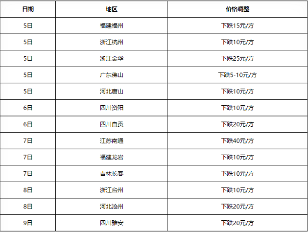 進(jìn)入七月份,西南四川、華東江蘇、浙江、福建以及河北唐山、滄州、廣東佛山、東北吉林等多區(qū)域商混價(jià)格出現(xiàn)5-40元/方不等的下跌。