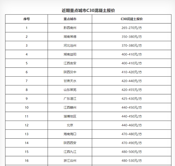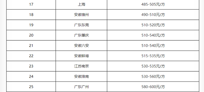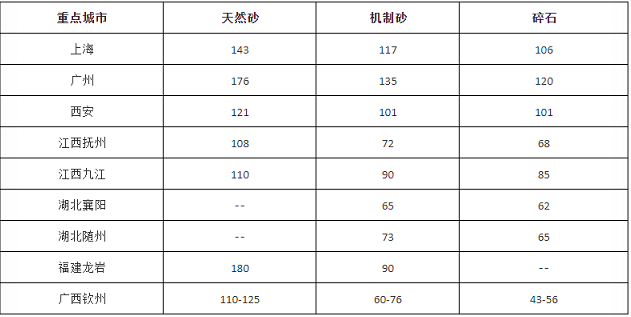 近期重點(diǎn)城市砂石報(bào)價(jià)