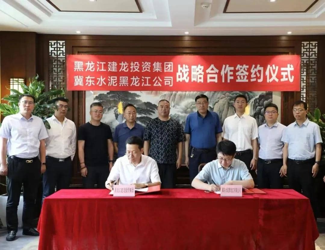 為落實冀東水泥股份與建龍集團在北京簽訂的《全產(chǎn)業(yè)鏈戰(zhàn)略合作協(xié)議》精神,2021年6月30日,在吉黑區(qū)域黨委書記李曉明,北京建龍重工集團副總裁、黑龍江建龍投資集團總經(jīng)理魏國棟等領(lǐng)導(dǎo)的共同見證下,冀東水泥黑龍江有限公司經(jīng)理王俊華與建龍投資集團劉鳳和副經(jīng)理簽署了戰(zhàn)略合作協(xié)議。