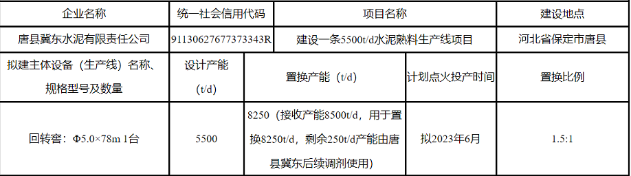 唐縣冀東水泥有限責(zé)任公司建設(shè)一條5500t/d水泥熟料生產(chǎn)線