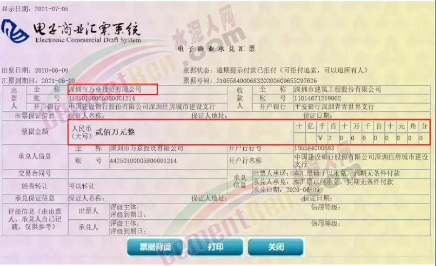 2021年6月9日,深圳市建筑工程股份有限公司200萬元商業(yè)承兌匯票逾期未收到款項(xiàng)。