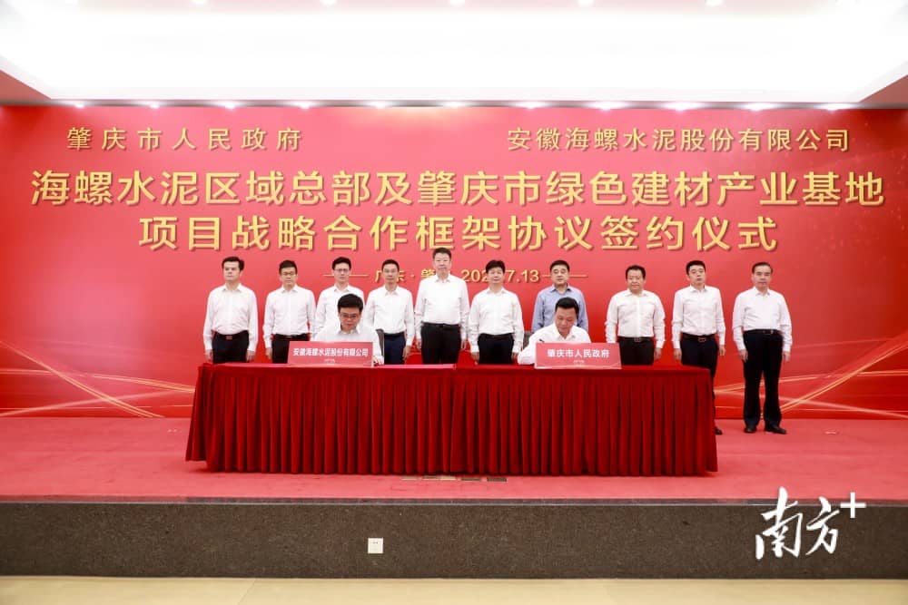 根據(jù)雙方合作計劃,安徽海螺水泥股份有限公司將與肇慶在總部經(jīng)濟、新型綠色建材、環(huán)保材料、物流集散、貿(mào)易結(jié)算以及產(chǎn)品研發(fā)等領(lǐng)域開展全面合作,共同打造服務(wù)于粵港澳大灣區(qū)的具有國內(nèi)一流水平的新型建材領(lǐng)域科技創(chuàng)新和產(chǎn)業(yè)發(fā)展平臺。