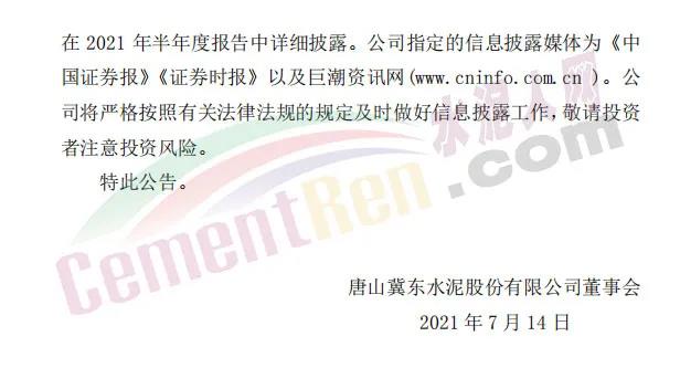 冀東水泥(000401.SZ)13日晚披露的2021年半年度業(yè)績(jī)預(yù)告顯示,公司預(yù)計(jì)上半年歸屬于上市公司股東的凈利潤(rùn)為12億元~13億元,比上年同期增長(zhǎng)20%-30%。去年上半年,冀東水泥歸屬于上市公司股東的凈利潤(rùn)為10.01億元。
