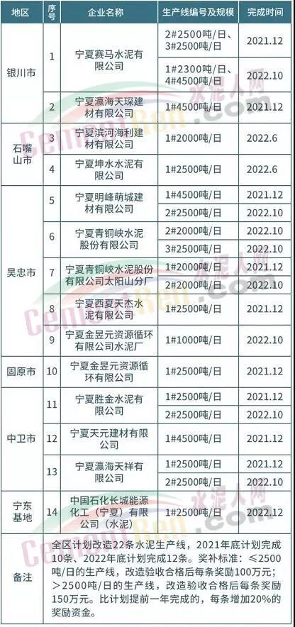 寧夏全區(qū)計(jì)劃改造22條水泥生產(chǎn)線