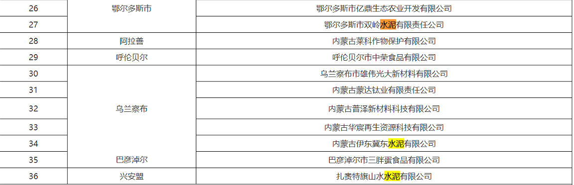 7月16日,內(nèi)蒙古自治區(qū)公布了本省2021年(第二批)綠色制造示范名單, 經(jīng)申報(bào)單位自評價(jià)、第三方機(jī)構(gòu)評價(jià)、盟市初審?fù)扑]、自治區(qū)組織專家組審核、網(wǎng)上公示等環(huán)節(jié),最終確定2021年(第二批)自治區(qū)級綠色制造示范名單,其中,綠色工廠36家、綠色設(shè)計(jì)產(chǎn)品5個(gè)、綠色園區(qū)4家以及綠色供應(yīng)鏈2家(詳見附件)。其中鄂爾多斯市雙嶺水泥有限責(zé)任公司、內(nèi)蒙古伊東冀東水泥有限公司、扎賚特旗山水水泥有限公司、內(nèi)蒙古億利冀東水泥有限責(zé)任公司這四家水泥企業(yè)上榜,現(xiàn)予公布,并提出具體要求如下: