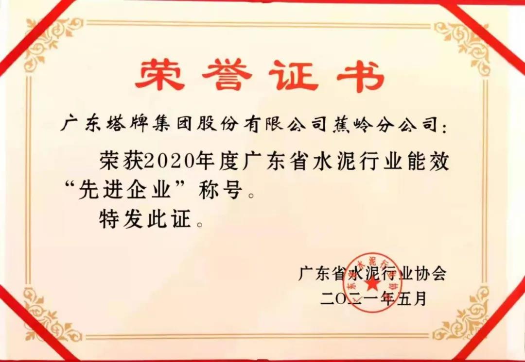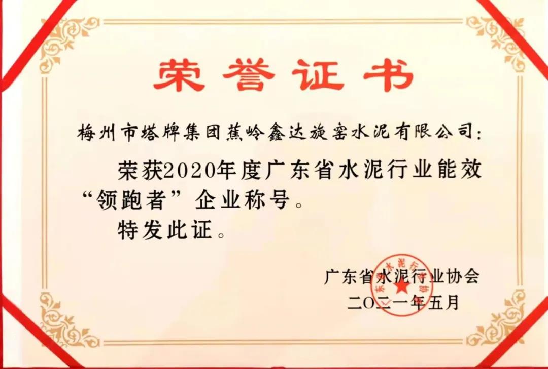 日前,2020年度廣東省水泥行業(yè)能效對標工作總結(jié)會在廣東惠州召開,會上對能效工作先進企業(yè)進行了表彰。塔牌集團屬下企業(yè)鑫達公司榮獲2020年度廣東省水泥行業(yè)能效“領(lǐng)跑者”企業(yè)稱號,蕉嶺分公司、惠塔公司分別榮獲2020年度廣東省水泥行業(yè)能效“先進企業(yè)”稱號。