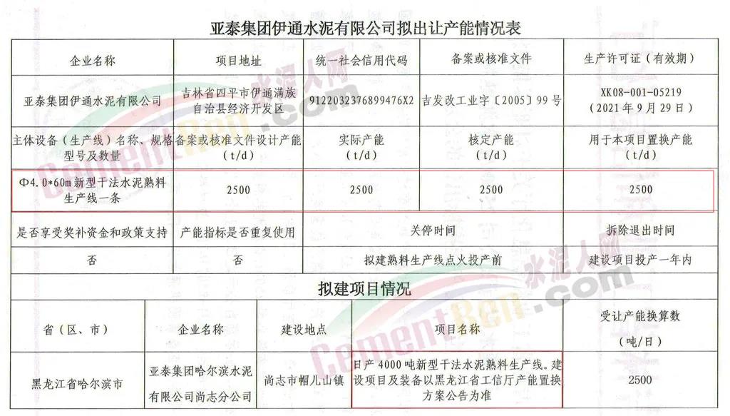 日前,吉林省工信廳發(fā)布《關(guān)于對亞泰集團(tuán)伊通水泥有限公司2500t/d水泥熟料生產(chǎn)線能指標(biāo)出讓的公示》顯示,亞泰集團(tuán)伊通水泥有限公司2500t/d水泥熟料生產(chǎn)線能指標(biāo)擬出讓至亞泰集團(tuán)哈爾濱水泥有限公司尚志分公司用于新建一條4000t/d新型干法水泥熟料生產(chǎn)線。退出項(xiàng)目將于建設(shè)項(xiàng)目投產(chǎn)一年內(nèi)拆除。