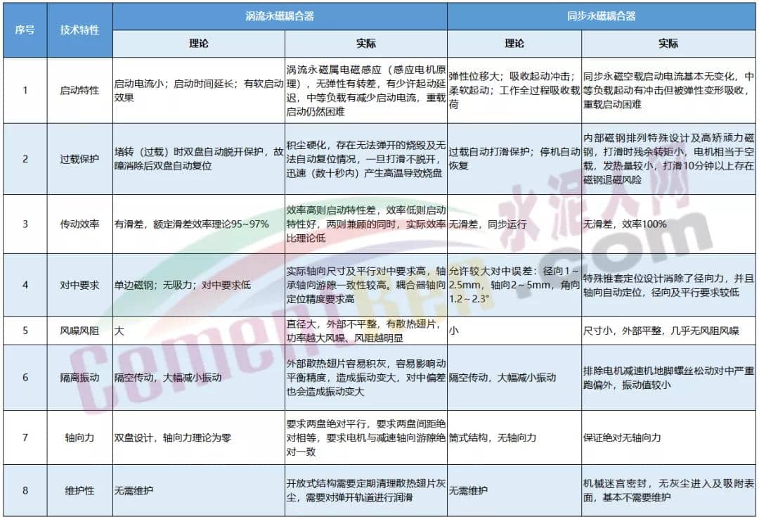 下面我具體列舉出渦流永磁耦合器和同步永磁耦合器的專項對比情況: