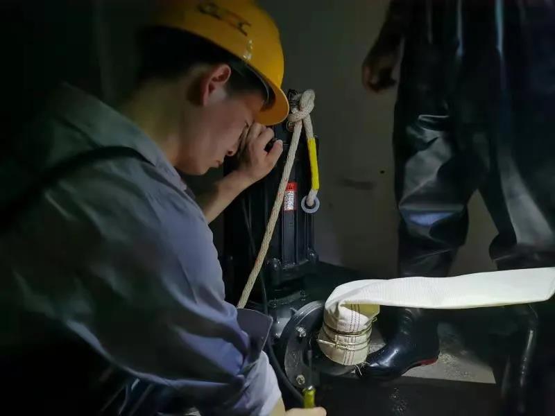 ▲登州中聯(lián)黨員先鋒突擊隊(duì)抽取積水